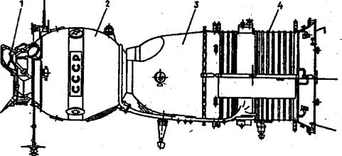 1 — стыковочный агрегат; 2 — орбитальный отсек; 3 —спускаемый аппарат;
