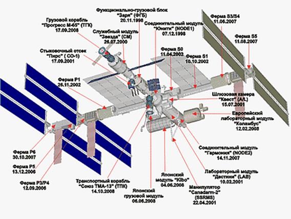 Современным детищем международного сотрудничества в области освоения Космоса является разработка, запуск и эксплуатация международной космической станции (МКС), рис. 2.20.