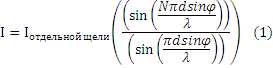 , где k’€n и ≠ N, 2N… Между двумя главными максимумами находятся (N-1) дополнительных минимумов.