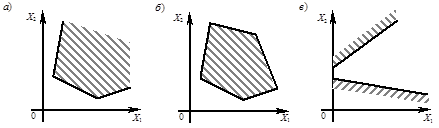 a – неограниченная область; б – выпуклый многоугольник; в – пустое множество