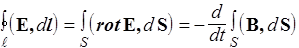 Уравнения Максвелла в дифференциальной форме. Применим формулу Стокса к первому уравнению Максвелла (см. лекцию 8). Интеграл по замкнутому контуру L в левой части преобразуется в интеграл от ротора E по поверхности, ограниченной этим контуром