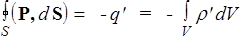 где объем косого цилиндра выражен в виде скалярного произведения: DV= (l,dS). Внутри исходно нейтрального объема оказался равный прошедшему отрицательный заряд, следовательно, (P,dS) = -dq'. Проинтегрируем это равенство по замкнутой поверхности S: