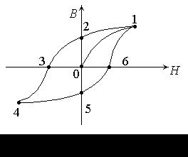Ферромагнетики. Для ферромагнетиков зависимость В(Н) нелинейна и неоднозначна, поэтому формально вводят m=В/moН=f(H), но при этом m имеет смысл только в ходе первоначального намагничивания (см. участок 0®1 на рис.46). Максимальное значение m у ферромагнетиков может быть очень велико, например, у железа m»5000. На рис.48 представлена кривая намагничивания для типичного ферромагнетика. При первоначальном увеличении H индукция магнитного поля возрастает до некоторой величины (участок 0®I). Затем при уменьшении напряженности до нуля индукция магнитного поля не спадает до нуля (I®2). Это остаточное намагничивание объясняет существование постоянного магнита. Увеличение Н в противоположном направлении (2®3) приводит к полному размагничиванию, а затем и к перемагничиванию, т.е. переориентации магнитных моментов в противоположном направлении (3®4). Затем при уменьшении Н кривая идет по пути 4®5. При Н=0 (в точке 5) В¹0. Уменьшение В до нуля происходит при возрастании Н в первоначальном направлении (5®6). Намагничивание по пути 6®I отличается от первоначального 0®1 и указывает на неоднозначность зависимости В(Н). Ферромагнетизм нельзя объяснить в рамках классической электродинамики. Оказалось, что в ферромагнетике действуют межатомные силы, имеющие квантовую природу, которые ориентируют спиновые магнитные моменты электронов в атомах параллельно друг другу. Области с параллельно направленными магнитными моментами называются доменами. Типичный размер домена » 10-4 см. Во внешнем магнитном поле магнитные моменты доменов ориентируются по полю, значительно увеличивая магнитную индукцию в ферромагнетике. При достаточной величине внешнего поля практически все домены ориентируются вдоль него. При снятии внешнего поля не все домены разориентируются, поэтому для ферромагнитных материалов характерно сохранение остаточной намагниченности.