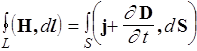 | Циркуляция вектора Н по любому замкнутому контуру равна полному току (проводимости и смещения) через любую поверхность, ограниченную данным контуром |