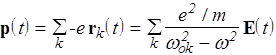 где rk(t) - смещение k-го электрона из положения равновесия под действием электрического поля волны. Разумно предположить, что все rk(t) направлены вдоль E(t), а все еk=-е (так как все электроны одинаковы). Подставляя r(t) из (192), получим