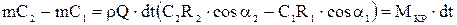 Пусть жидкость массой m движется с абсолютной скоростью С, тогда количество движения этой массы составит вектор