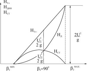 Определим изменение величин слагаемых общего теоретического напора (статического и динамического) от изменения угла