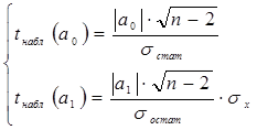Если tнабл > tтабл, то параметр считается значимым.