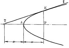 Простой способ проведения касательной к параболе в данной точке дан на рис. 9.9.