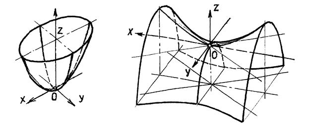2. Параболоиды. Параболоиды эллиптические (рис.10.18) имеют уравнение х2/р + y2/b=2z. Параболоид вращения имеет уравнение z2=2px.