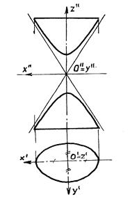 б) Гиперболоиды двух полостные (рис.10.21) имеют уравнение вида х2/а2+y2/b2-z2/c2=-1.