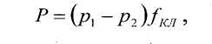 Из условия равновесия следует P = R + G или (р1–p2) fKЛ, = R+G .