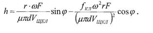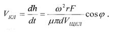 где μ - коэффициент расхода клапана, зависящий от его гидравлического сопротивления и от высоты подъема (например, для тарельчатого клапана с плоским дном при изменении высоты h = 1 мм до 12 мм коэффициент расхода μ убывает с 0,87 до 0,445 [8]); площадь щели клапана