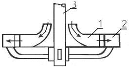 На рисунке 8.3 изображена гидравлическая турбина с внутренним подводом жидкости - центробежная турбина Сафонова. Она имеет статор 1, ротор 2, вал 3 и подводящий канал 4.