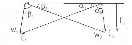Параллелограммы скоростей на входе и выходе из ротора имеют общие скорости U и Cz .
