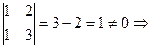 Для этого необходимо, чтобы определитель матрицы системы не равнялся 0.