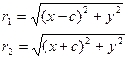 F1, F2 – фокусы. F1 = (c; 0); F2(-c; 0)