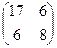 Коэффициенты а11 = 17, а12 = 6, а22 = 8. А =
