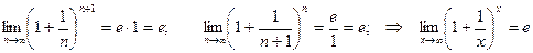 - монотонно возрастающая и ограниченная сверху, т.е. имеет конечный предел. Этот предел принято обозначать буквой е.