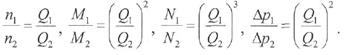 Если турбины турбобура работают на одной и той же жидкости (р = const), топри изменении подачи насоса на основании общих формул подобия можно определить все показатели работы: