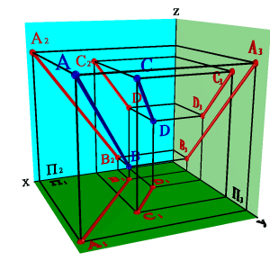 Это свойство параллельного проецирования остается справедливым и для ортогональных проекций, то есть если ABCD то A1B1C1D1; A2B2C2D2; A3B3C3D3(рис.3.19). В общем случае справедливо и обратное утверждение.