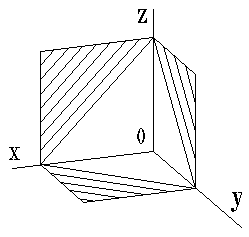 ·Линии штриховки сечения в аксонометрических проекциях наносят параллельно одной из диагоналей проекций квадратов, лежащих в соответствующих координатных плоскостях, стороны которых параллельны аксонометрическим осям.