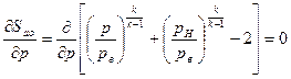 Чтобы определить, при каком значении р адиабатическая работа будет наименьшей, возьмем первую производную Saд no p и приравняем к нулю: