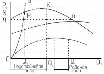 Так как подача, это ведет к увеличению давления в газосборнике и снижению давления подачи до Qe. Затем это явление повторяется.