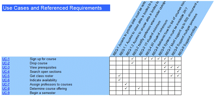 Рис. 7.2. Иллюстрация матрицы трассировки — табель посещаемости