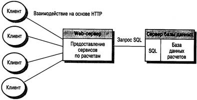 Использование трехуровневой архитектуры в этом примере позволило оптимизировать передачу данных между Web-сервером и сервером базы данных. Взаимодействие между этими системами не обязательно строить на стандартах Internet, можно использовать более быстрые коммуникационные протоколы низкого уровня. Обычно информацию от базы данных обрабатывает эффективное промежуточное ПО, которое поддерживает запросы к базе данных на языке структурированных запросов SQL.