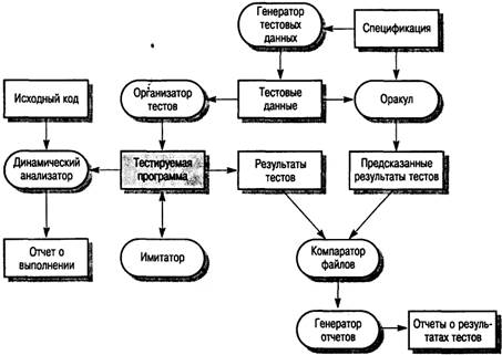 На рис. 21.11 показаны возможные инструментальные средства тестирования и отношения между ними. Перечислим их.