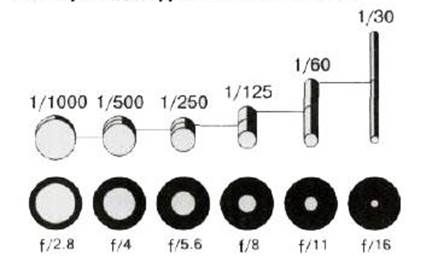 - экспозиция — с уменьшением отверстия на одну ступень поток света уменьшается вдвое, что требует увеличения вдвое времени выдержки, для сохранения правильной экспозиции;