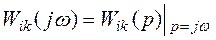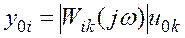 определяет установившуюся реакцию, получаемую на i-том выходе при подаче на k -й вход гармонического сигнала, при этом сигналы на остальных входах отсутствуют и система предварительно невозбуждена, т. е.