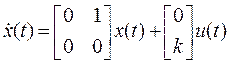 Пример. Пусть объект управления представляет собой двойной интегратор с одним входом u(t) и одним выходом y(t), описываемый уравнениями в переменных состояния