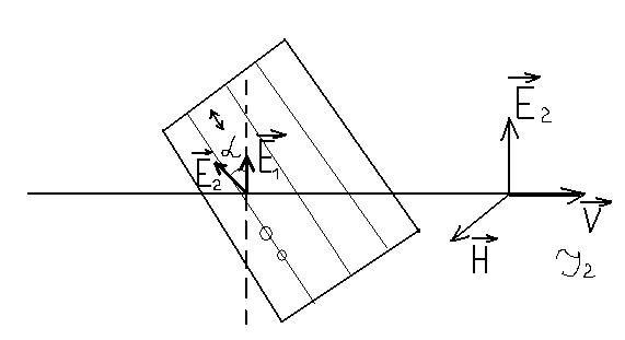 относительно оси поляризации и найдем интенсивность света за ними, если интэнсивность падающего света передается поляризатором I