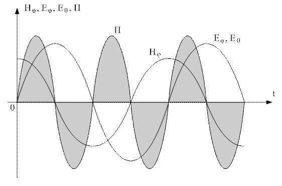 Рис. 18.4. Колебания Вектора Умова-Пойнтинга