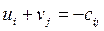 , которую назовем потенциалом пункта отправления Ai и каждому пункту назначения Bj величину