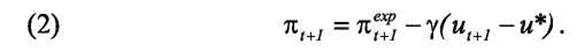 Если же произошли какие-то непредвиденные изменения и в результате инфляция оказалась выше ожидавшейся (πt+1> πexpt+1), то согласно (2) безработица окажется меньше естественного уровня ut+1< u* .