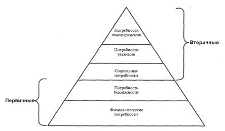 Первичные потребностиявляются по своей природе физиологическими и, как правило, врожденными. Пример таких потребностей - потребности в пище, воде, дышать, спать и т.д. Первичные потребности заложены генетически, Вторичные потребности — потребности психологические: потребности в успехе, уважении, привязанности, власти; потребность в принадлежности кому или чему-либо, вторичные обычно осознаются с опытом. Поскольку люди имеют различный приобретенный опыт, вторичные потребности людей различаются в большей степени, чем первичные.