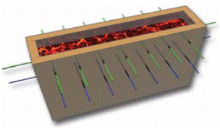 Соответственно принцип работы системы предупреждения прорывов базируется на сравнении температуры поверхности заготовки в различных точках по высоте и ширине кристаллизатора. Для этого в стенки кристаллизатора у их внутренней поверхности устанавливаются два ряда термопар, расположенных друг от друга на расстоянии 0,20-0,25 м по высоте (рис 21.3). В процессе разливки фиксируется температура поверхности заготовки для каждой термопары, а также разность в измерениях по высоте.