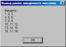 MsgBox "Введено: " & Chr(13) & str_msg, , "Вывод ранее введенного массива"