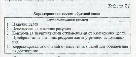 Системы обратной связи различной природы (биологические, организационные) состоят из одних и тех же элементов и работают на одних и тех же принципах. Характеристика систем обратной связи представлена в табл.1.