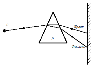 ». Следовательно, наиболее откло-няющиеся фиолетовые лучи обладают меньшей скоростью распространения в стекле, чем менее отклоняющиеся – красные.