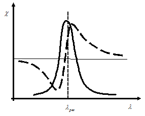 Как видно из сравнения этих кривых, максимальное поглощение световых волн происходит в области аномальной дисперсии, т.е. вещество поглощает наибольшее ко-личество энергии при резонансе.