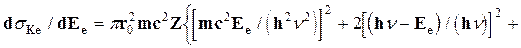 Для некоторых практических задач важное значение имеют дифференциальное сечение dsKe/dW на единицу угла для числа электронов, рассеянных на угол j, и дифференциальное сечение передачи электрону энергии в интервале от Еe до Ee+dEe. Эти сечения можно получить из (2.5) при замене соответствующих переменных