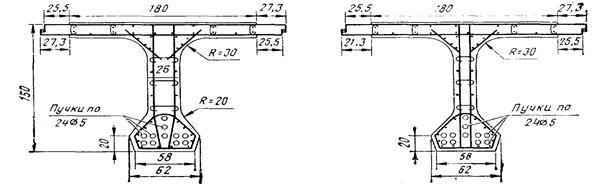 Нижнее ребро балок армируется двумя сварными каркасами, охватывающими зону размещения пучков напрягаемой арматуры. В зоне присоединения плиты к стенкам наклонно размещены стержни противоусадочной арматуры.