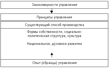 В принципах обобщены познанные законы и закономерности и обоснованный опыт управления (рис. 11). Принципы не привнесены извне, они вытекают из самой сущности общества, из уровня развития его производительных сил, культуры и тому подобного (например, японская и американская модели менеджмента).