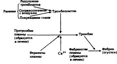 Первый этап характеризуется прилипанием тромбоцитов к поврежденной поверхности сосуда и склеиванием их между собой. Часть тромбоцитов распадается, при этом в присутствии ионов кальция и некоторых белков плазмы образуется белок тромбопластин. Время образования кровяного тромбопластина - несколько минут, в то время как тканевой тромбопластин образуется за несколько секунд. Необратимые изменения тромбоцитов наступают через 2-3 минуты с момента повреждения внутренней оболочки сосудов.