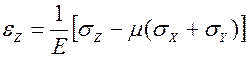 Определим относительные деформации элемента при объемном напряженном состоянии.