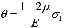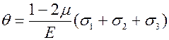 Определим относительную объемную деформацию элемента в пределах закона Гука.